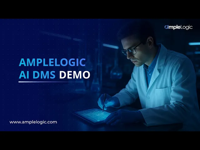 Pharma, CDMO, Biotech, and CRO industries face delays with inefficient document management. AmpleLogic AI DMS enhances efficiency with AI-powered features, voice search, real-time tracking, and LMS integration, ensuring compliance with global standards like TGA, CDSCO, and HEALTH CANADA.